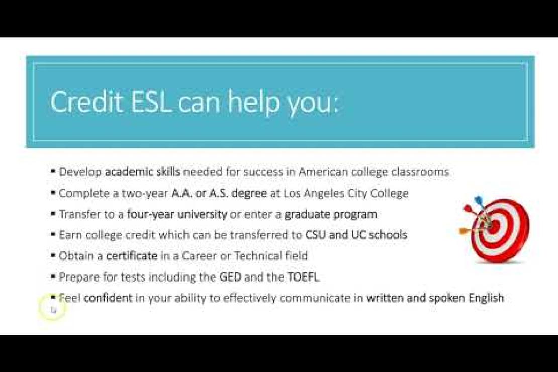 Watch this informative video to learn more about the Credit ESL Program at Los Angeles City College. Click on CC to read the captions as you view it.